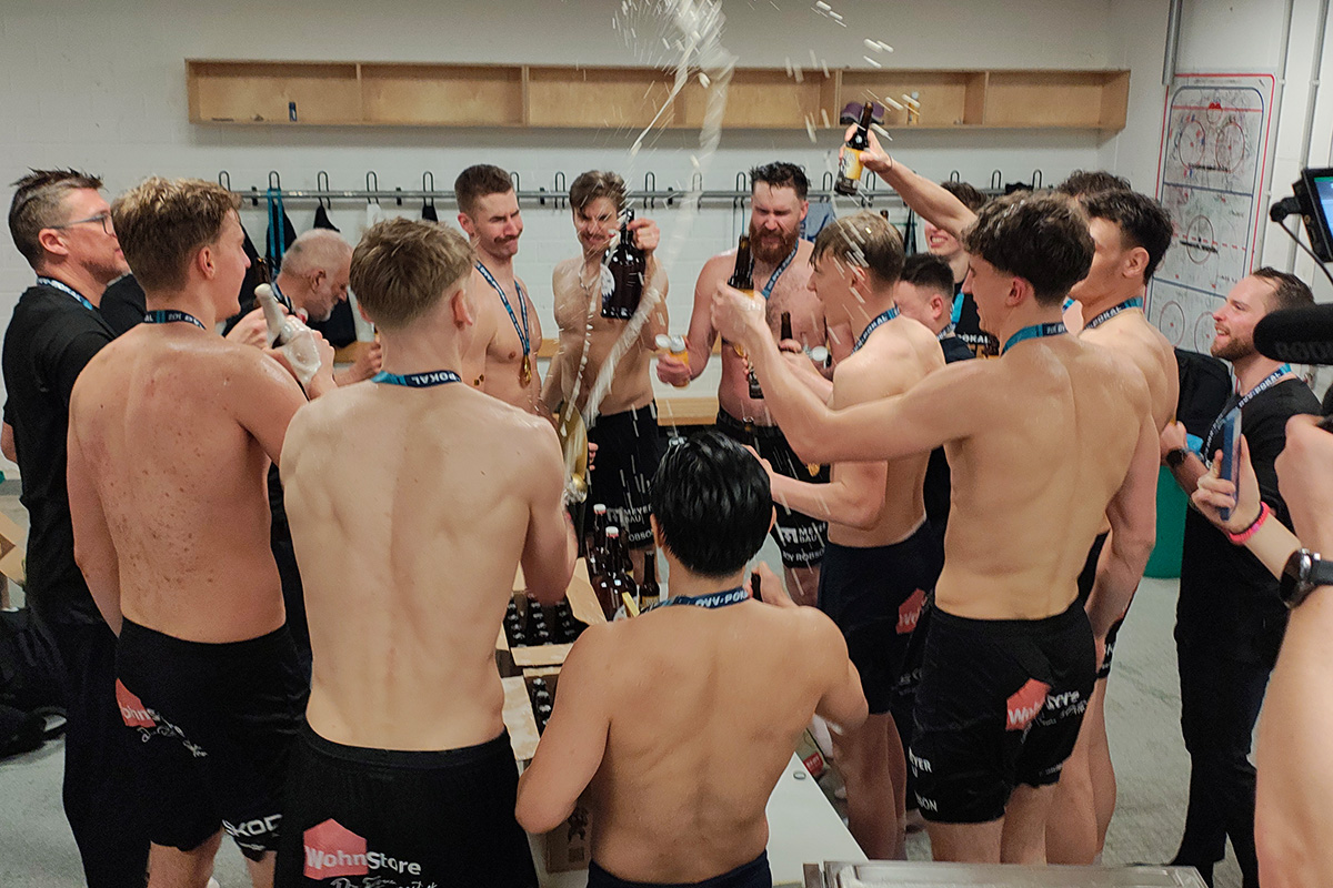 Die Pokalparty der SVG startete schon in Mannheim – erst mit dem Pokal bei den Fans, dann noch bis gegen Mitternacht feucht-fröhlich in der Kabine.
