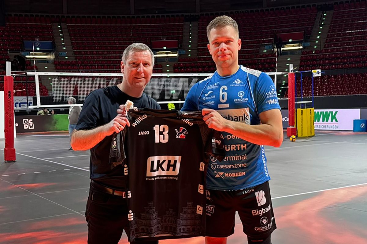Seit 1993 sind Lüneburg und Tartu Partnerstädte. Jetzt ist auch die SVG in der 98.000-Einwohner-Stadt im Südosten Estlands vertreten: Nach dem Challenge-Cup-Spiel des Partnerstadt-Klubs und amtierenden estnischen Meisters Bigbank Tartu bei den WWK Volleys Herrsching gab’s für Tartu-Teamkapitän Martti Juhkami ein SVG-Trikot und ein Säckchen mit original Lüneburger Salz.