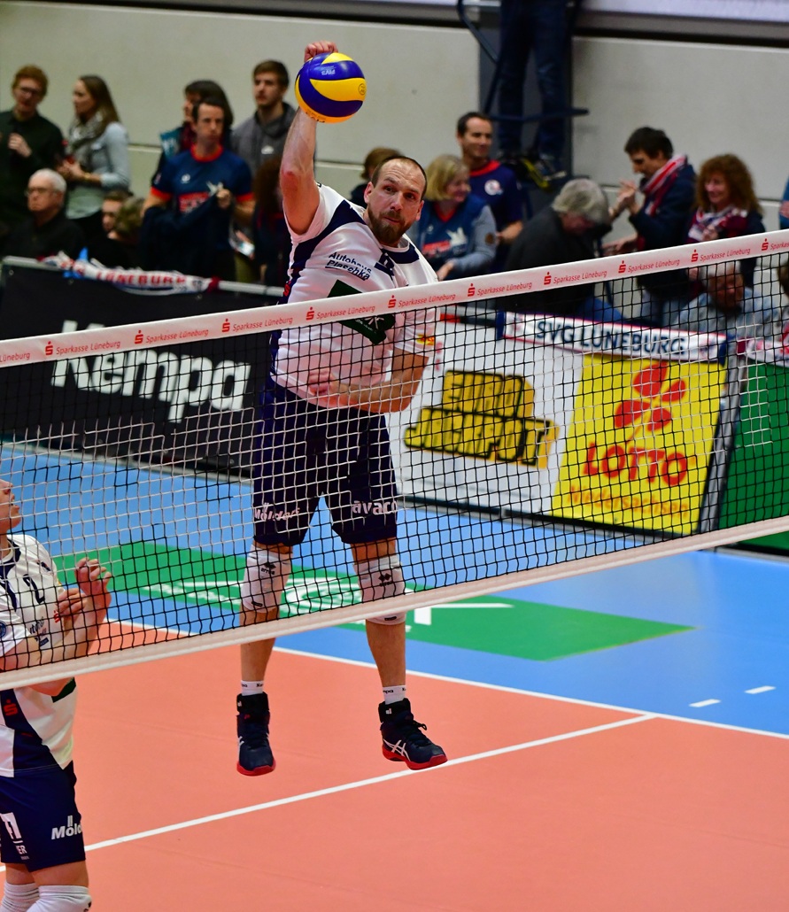 Und im zweiten Satz ging es zunächst weiter wie im ersten. In Addition standen beim Stand von 4:11 für Düren 18:36 Punkte zu Buche. Co-Trainer Bernd Schlesinger kommentierte diese Phase nach dem Spiel mit: „Ich war auf der Suche nach meiner Badehose, so sehr sind wir da geschwommen.“ Zeit, dass ein Ruck durch die Mannschaft von Stefan Hübner ging, was noch bis zum 7:14 dauerte. Dann gab es endlich erfolgreiche Blocks und Angriffe, die Lüneburg zurück ins Spiel brachten (12:14). Endlich war es ein Spiel auf Augenhöhe und die SVG kämpfte sich Punkt um Punkt heran. Es dauerte bis zum 23:22, bis es wieder zu einer Führung für Lüneburg reichte. Düren wehrte sich nach Kräften, den Satzausgleich konnten sie aber nicht verhindern (26:24).