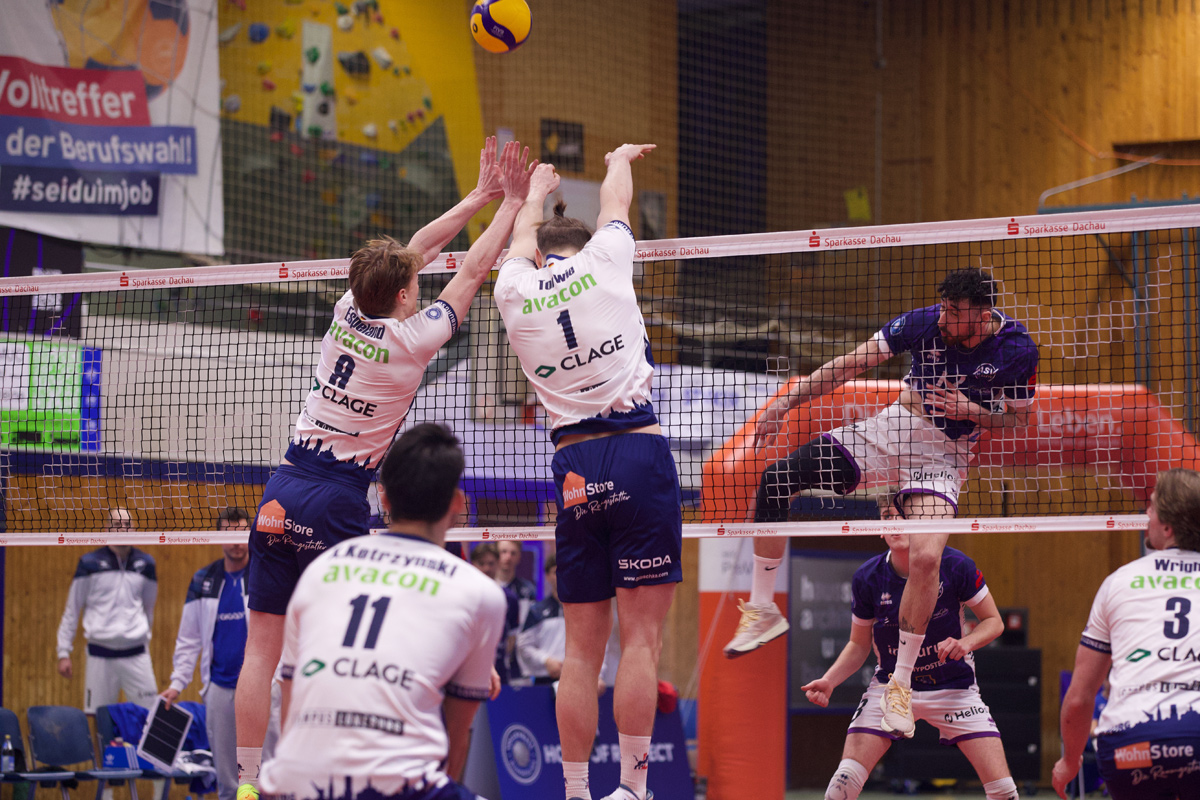 Der Tabellenneunte Dachau wollte sich jedoch nicht kampflos geschlagen geben – und zeigte das deutlich. Das Team von Coach Patrick Steuerwald lieferte den LüneHünen im dritten Satz ein enges Rennen. (5:5, 11:11), lag beim 16:14 erstmals mit zwei Punkten vorn. Dachau profitierte von Aufschlagfehlern der SVG (acht im 3. Satz) – und ließ sich auch nicht verunsichern, als die Gäste kurz wieder vorn lagen (17:18, 19:20). Patrick Rupprecht blockte stark gegen Ketrzynski (22:21), Simon Gallas legte ein Ass nach (23:21) – jetzt hatten die Hausherren das Momentum. Als eine gewonnene Blocktouch-Challenge auch noch aus einem 23:23 das 24:22 für Dachau machte, war der Weg zum Satzgewinn frei. Larsens Aufschlag ins Aus brachte Dachau auf 2:1 heran.