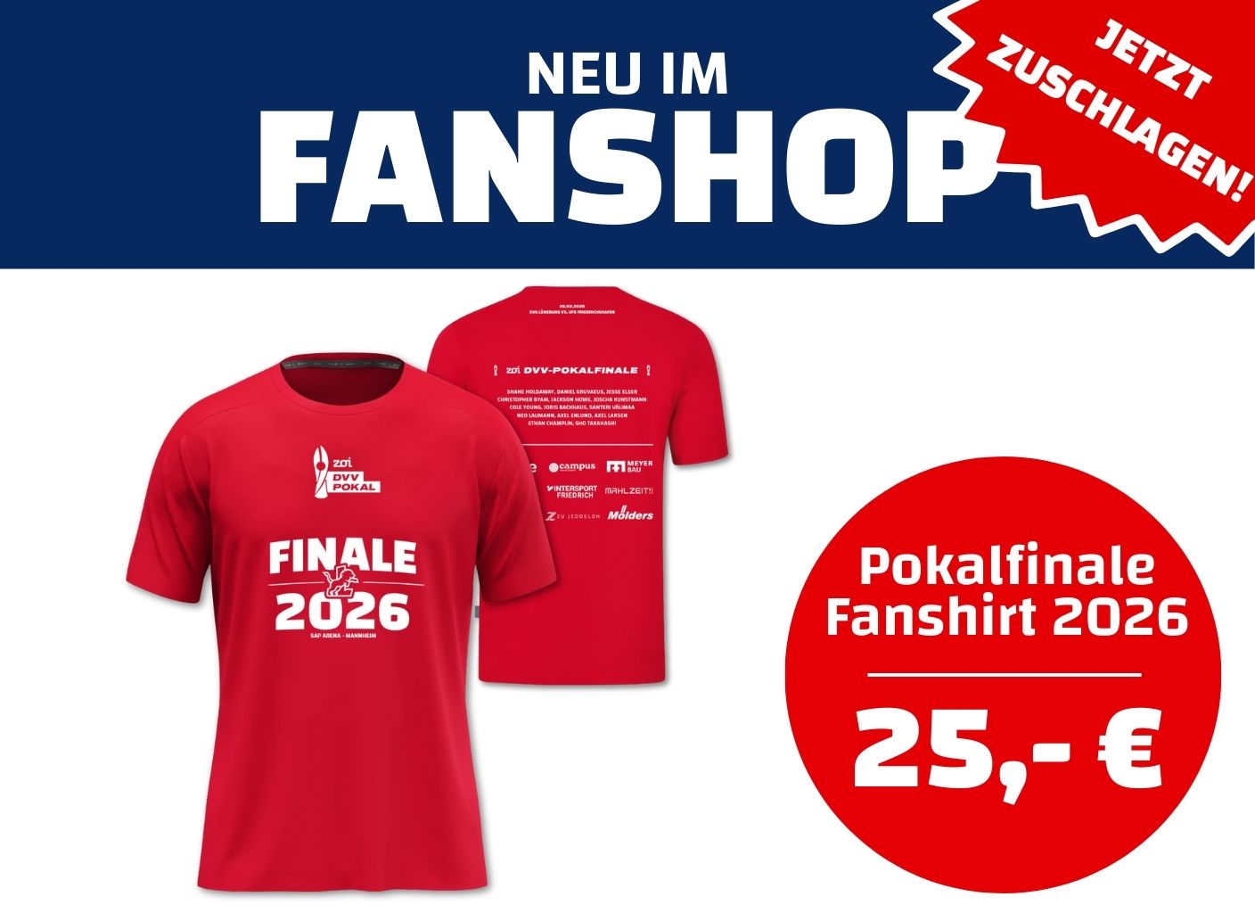 Das Shirt kostet nur 25 Euro und gibt es ab sofort im Fanshop bei allen Heimspielen, bei Intersport Friedrich und in Kürze im Onlineshop.