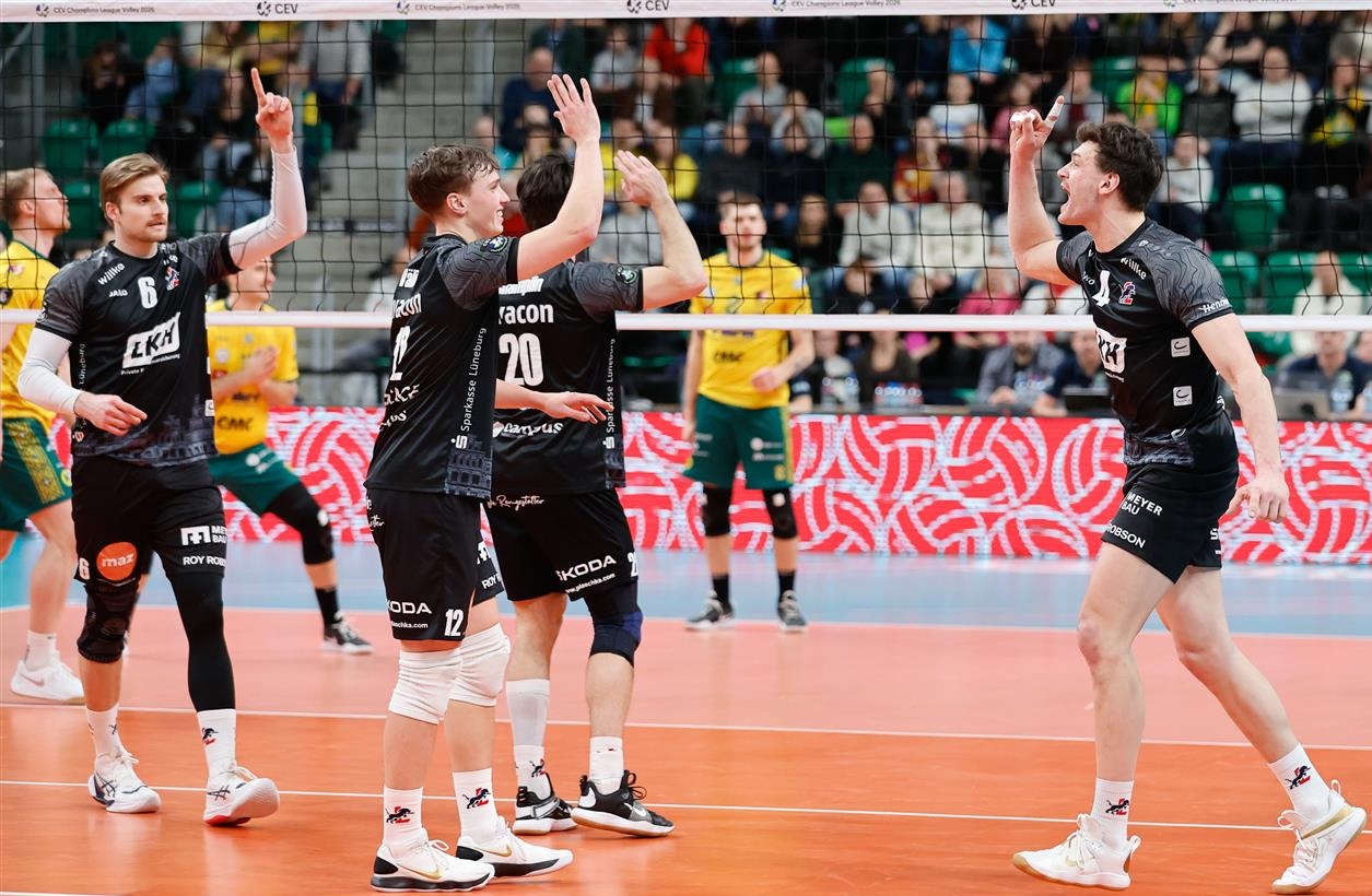 Grund zur Freude hatte dagegen Ex-LüneHüne Oskar Espeland, der mit den Belgiern von Roeselare nach zuvor fünf Tiebreak-Spielen (7 Punkte) im Pool B durch ein 3:1 gegen Halkbank Ankara dessen türkischen Rivalen Galatasaray Istanbul noch auf Rang 3 verdrängte und in die Playoffs einzog. Espeland steuerte dazu 22 Punkte bei. Jubeln durfte noch ein ehemaliger LüneHüne: Im Challenge Cup erreichte Jordan Ewert mit Altekma SK Izmir das Halbfinale, musste mit den Türken nach einem 3:2-Hinspielsieg in Zalau (Rumänien) nach einer 2:3-Heimniederlage im Rückspiel in den Golden Set und gewann 15:12. Leistungsträger Ewert punktete 18-mal.