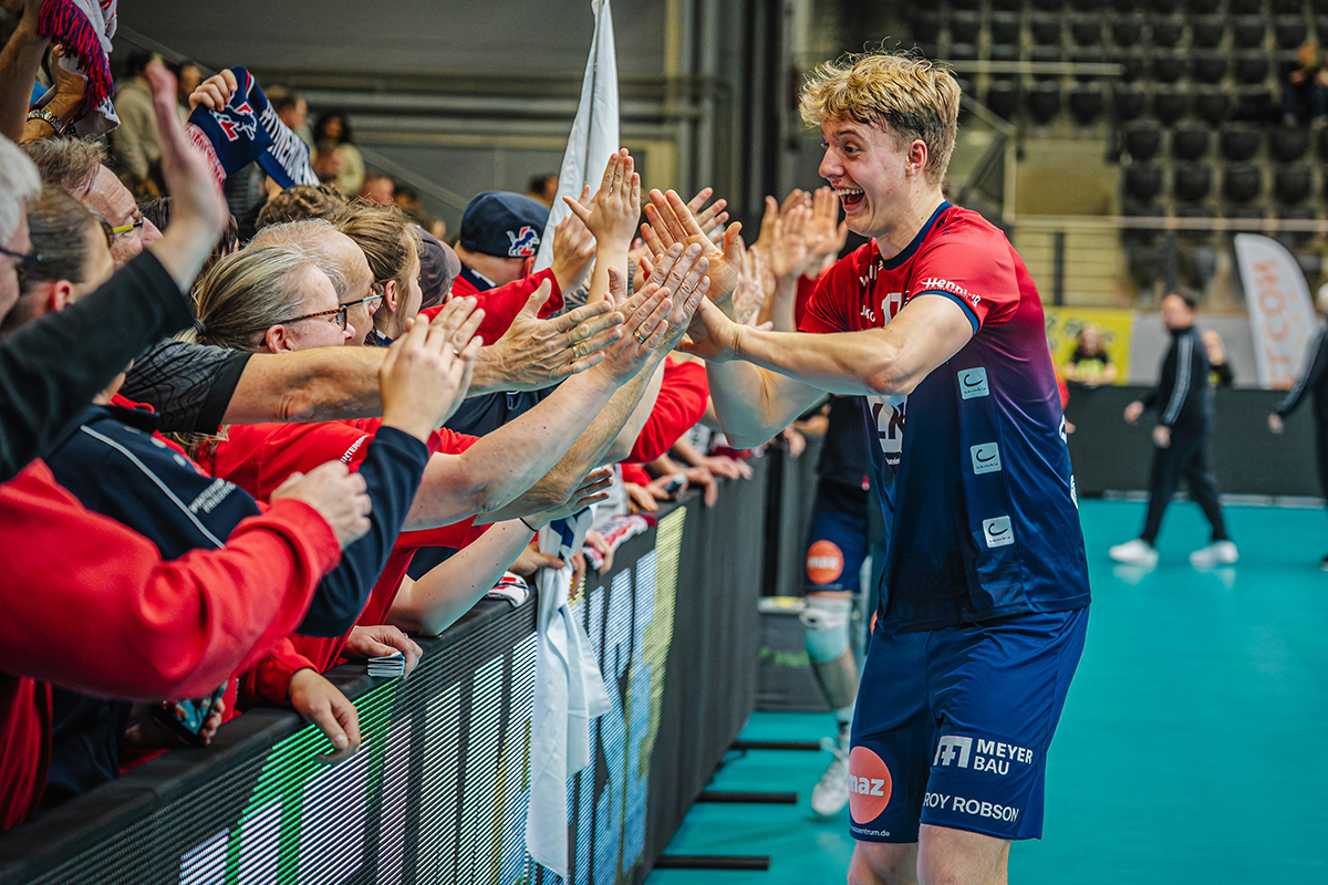 “Sehr schön”, freute sich Enlund nach der MVP-Auszeichnung auf Deutsch, war beeindruckt von der starken Fan-Unterstützung: “Es hat einfach Spaß gemacht, so viele Leute zu sehen, die uns anfeuern!” Deshalb ging’s zum Jubeln gleich zum Lüneblock. “Es ist toll, solche Fans zu haben, ich bin einfach dankbar dafür.” Auch mit dem Spiel, besonders der starken Aufholjagd im zweiten Satz, war der junge Schwede äußerst zufrieden: “Bei uns hat heute alles gepasst. Gegen uns ist es hart zu spielen. Giesen hatte ein paar gute Aufschläge, aber am Ende haben wir bewiesen, dass wir uns immer behaupten können.”